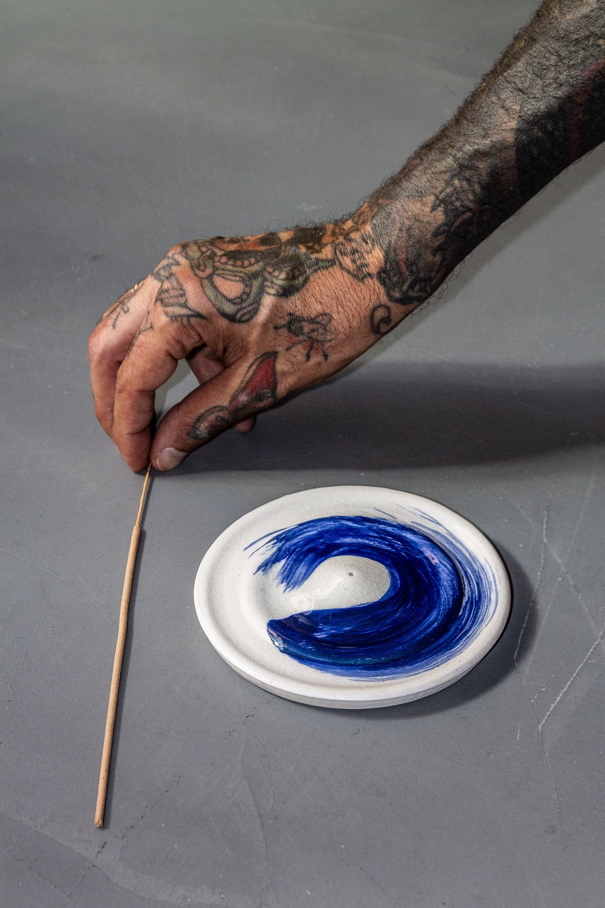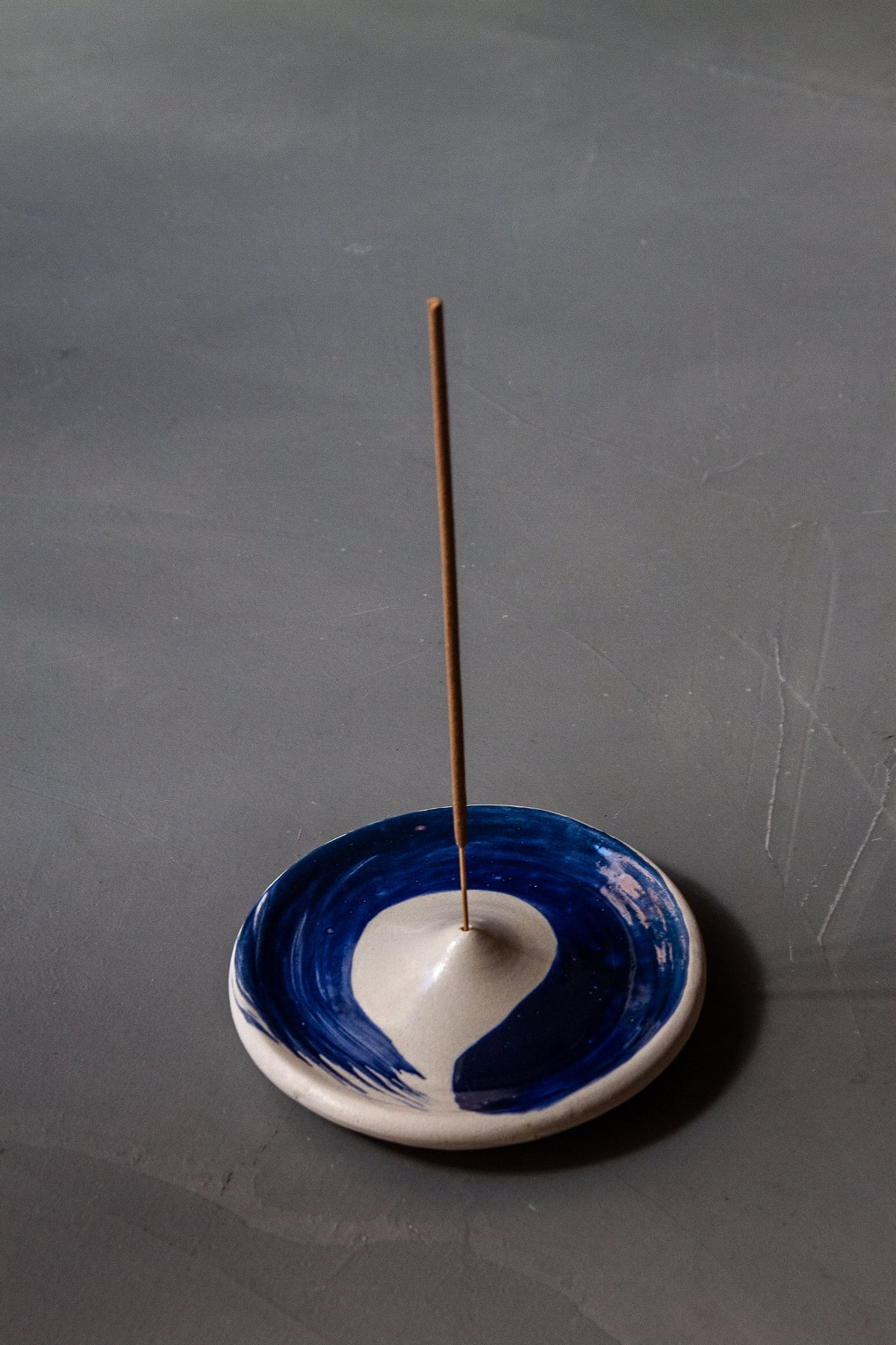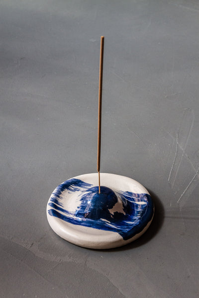Featuring a serene ocean blue glaze, this incense plate is a harmonious blend of artistry and function. The glaze creates unique patterns during the cooling process, caused by variations in shrinkage between the glaze and base material. Each plate showcases a one-of-a-kind texture and color, offering a dynamic visual experience from different angles. Perfect for burning incense sticks or cones.