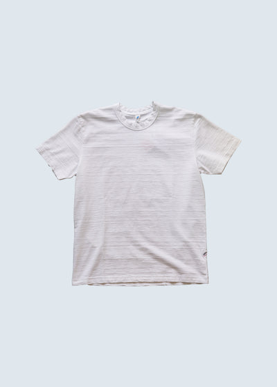 Crafted in Japan from a substantial 8oz slub cotton jersey, Pure Blue Japan’s Slub Jersey T-Shirt exemplifies the brand’s dedication to quality and texture. This timeless white crew neck tee offers a perfect balance of weight, softness, and breathability — a premium essential designed to age beautifully with wear.