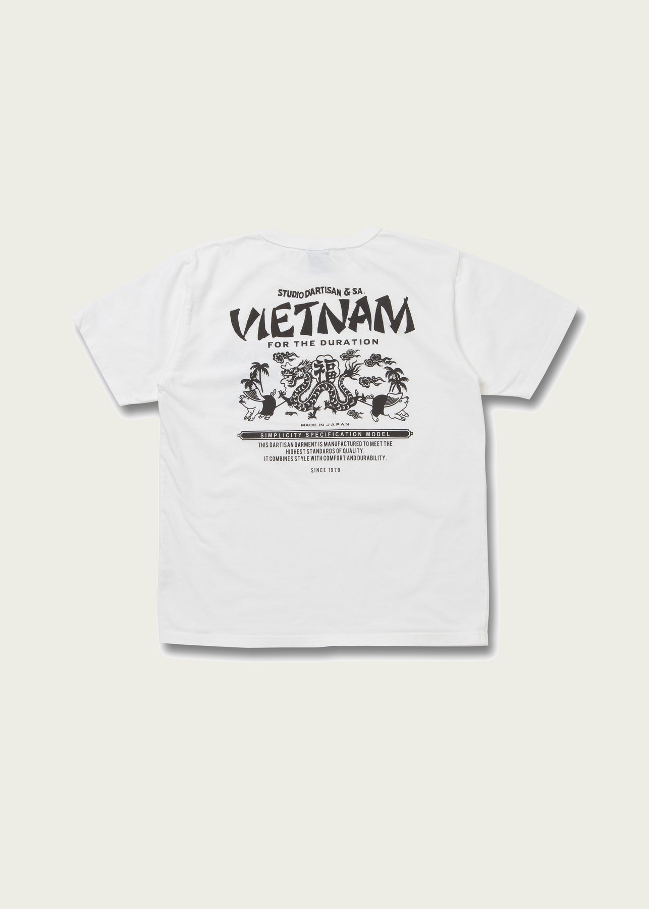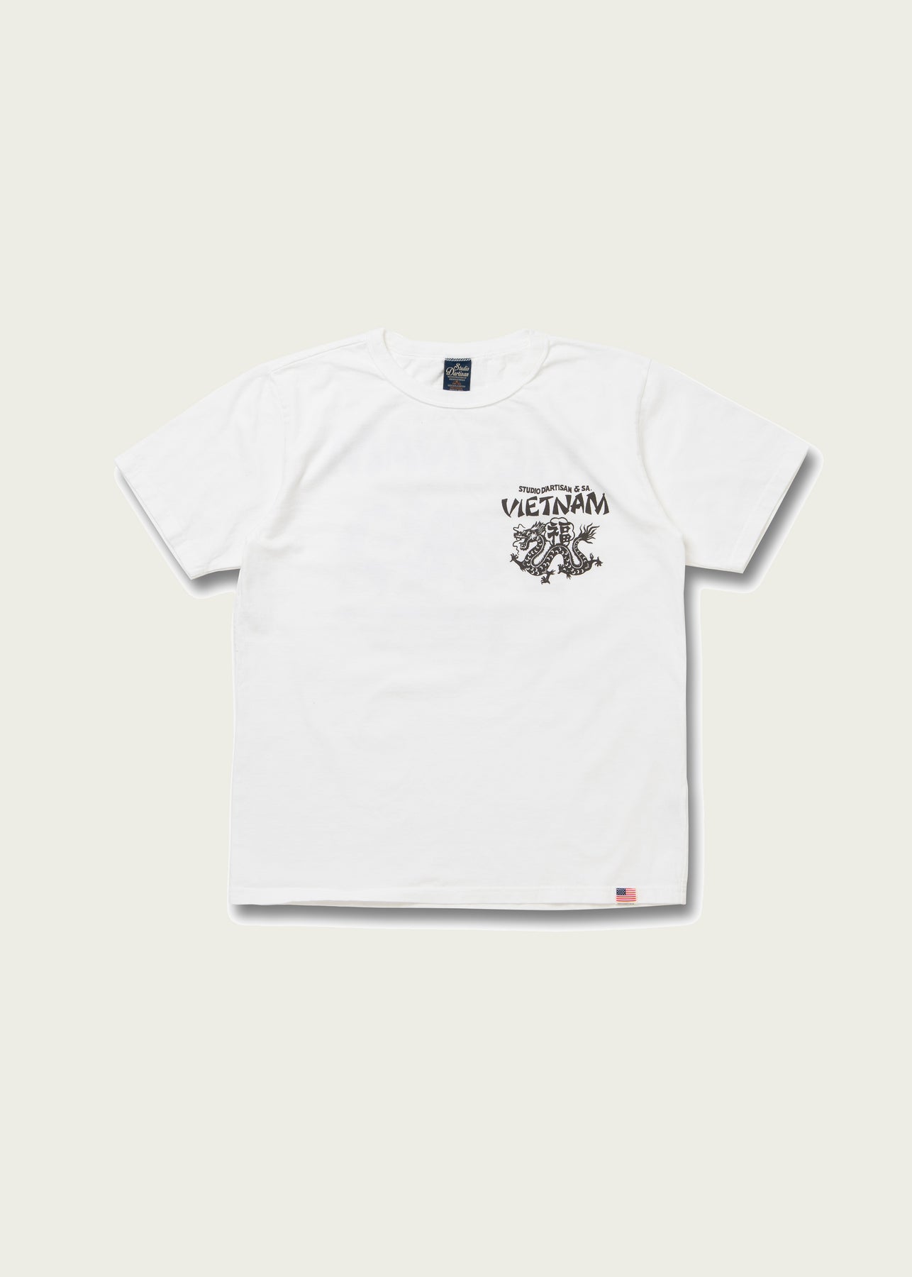 Details include an authentic USA Cotton tag and an original Studio D’Artisan “Vietnam” logo, screen printed on both the chest and back, adding a bold graphic statement rooted in vintage inspiration.