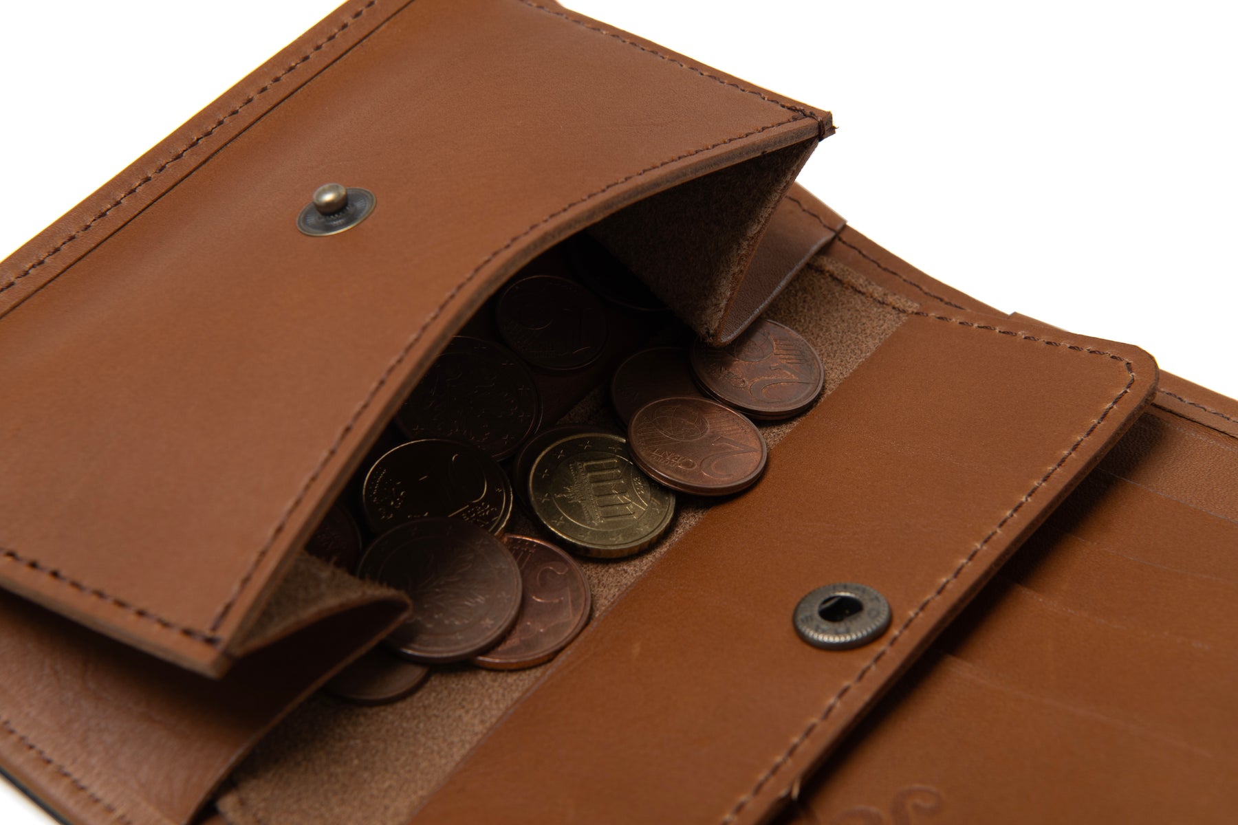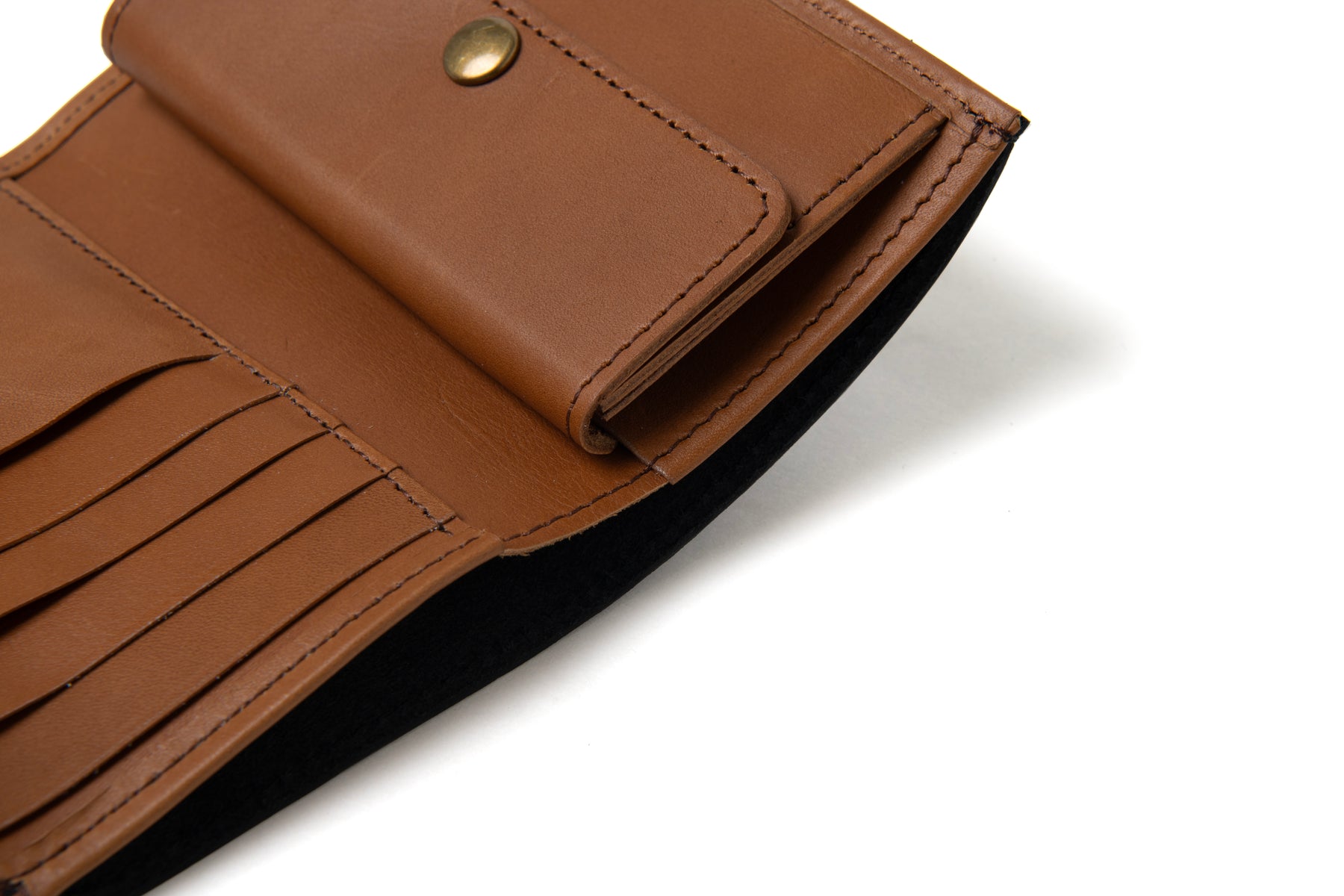 Each wallet is finished by hand with a carefully applied dye process that creates subtle variation in color and surface character. Rather than a uniform finish, the leather displays depth and nuance, giving every piece an individual presence. Offered in Brown and Black, both tones start with a rich, organic appearance that continues to evolve as the wallet is used.