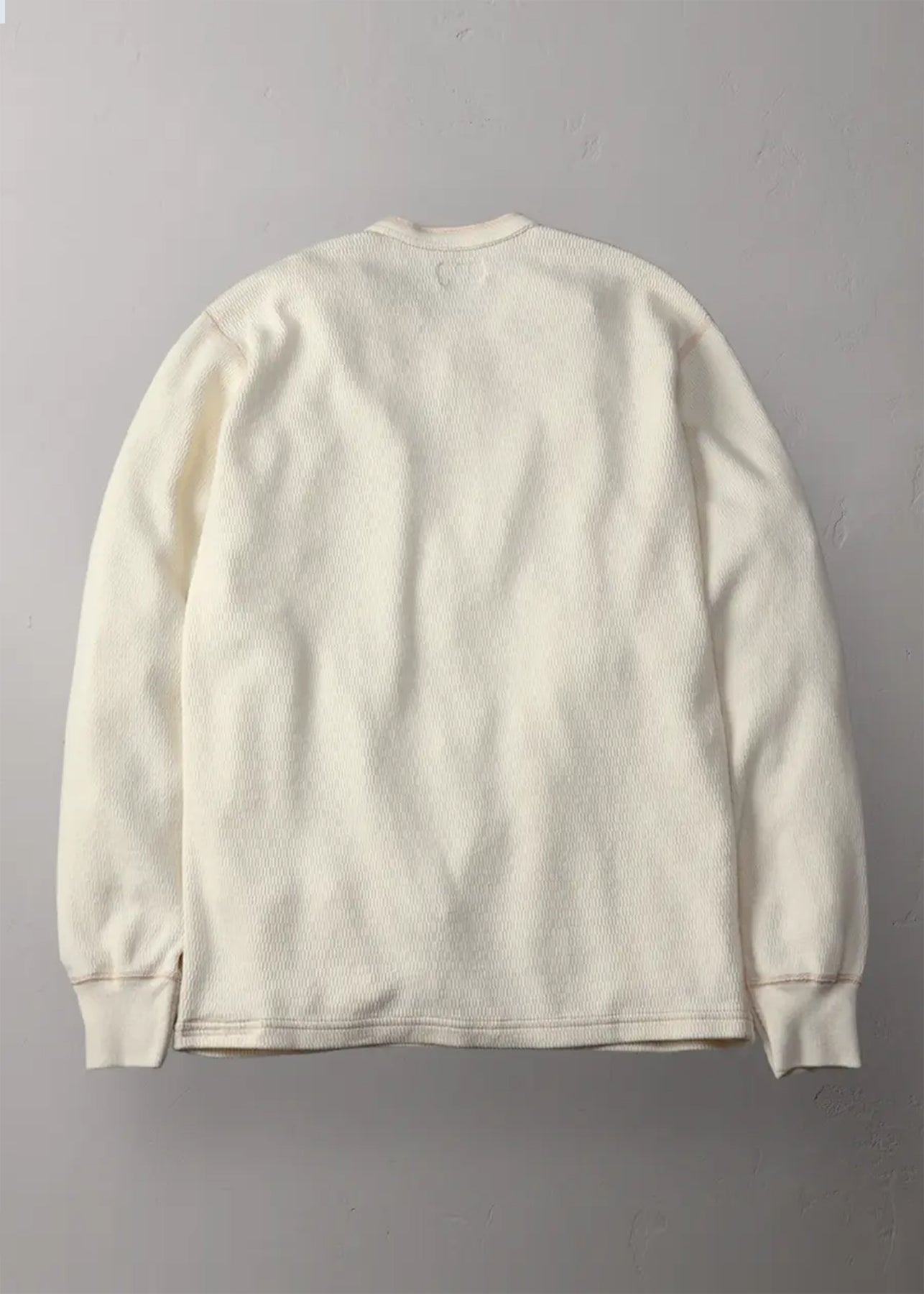 THE FLAT HEAD "HENLEY-NECK" THERMAL LONGSLEEVE T-SHIRT FN-THLH-004 IVORY